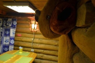 Большой, уютный банкетный зал с деревянной мебелью создаёт особую атмосферу – душевную и дружескую. Из развлечений вы сможете воспользоваться караоке, домашним кинотеатром или просто удобно расположиться на диванчике и покурить кальян.